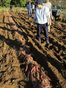 昨日は既にぶどうは全て収穫し終わっていたので、畑で芋掘りのお手伝いをみんなで行いました