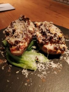 上にはと肉々しいソースとたっぷりのチーズ、トリュフで風味付けされた瑞々しい小松菜の絶妙なハーモニー、、