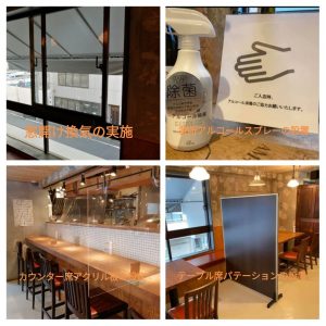 ・店内の空気は定期的な窓開け換気+厨房内ダクトにより常に空気が入れ替わっております