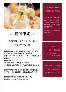 \\ お持ち帰り用シャンパーニュ特別企画 //
