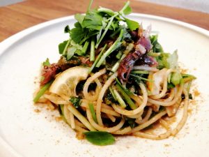 \\ ホタルイカと芹、蕗の薹のアーリオ・オーリオ //