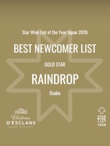 オープンより1年、こんなにも光栄な賞を頂けたのは偏に素敵なワインをご紹介してくださるインポーター様、情熱を込めて造り続ける生産者様、そして日々RAINDROPに足を運んでくださるお客様のおかげです!