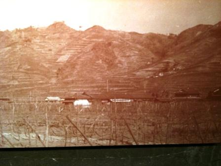 歴史を感じさせる住宅地を抜けるとブドウ畑が上の方まで・・・・