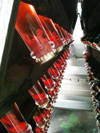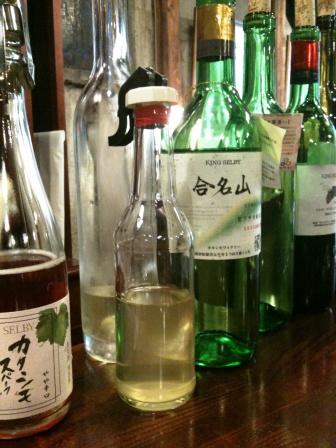 ピュピトルにささるスパークリングロゼ(デラウエアー/キャンベルアーリー)綺麗です。
