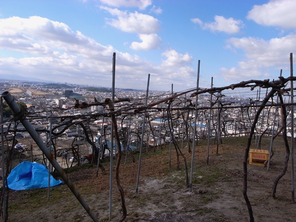 合名山のブドウ畑から眺める、大阪の街と大阪の空。