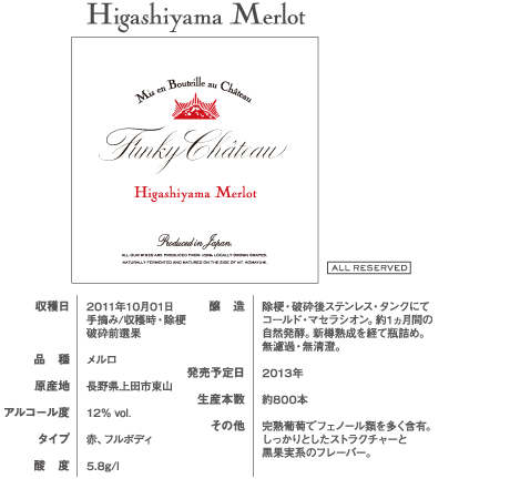 ドメインものの東山メルローとカベルネ。こちらはメルローの資料ですが、カベルネはカベルネソーヴィニヨンとカベルネフランのブレンドです。
