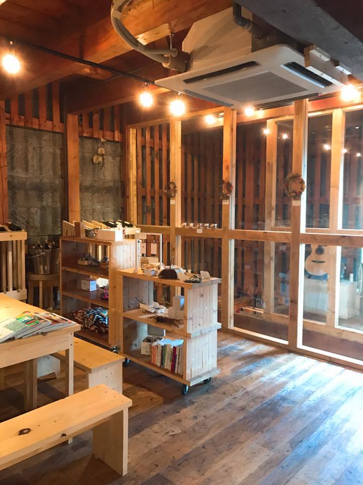 ボサノヴァの音楽が流れる、落ち着くウッディーな空間。