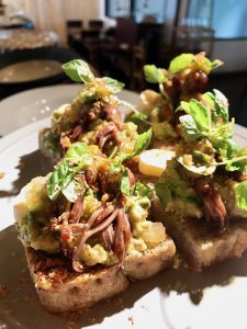 『ホタルイカとアボカド 大地のほっぺチーズのクロスティーニ』