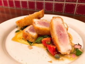 衣はサックサク!中はしっとりとレアなメカジキのカツレツ。