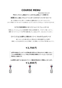 平日ランチタイム限定コース 〜November.10,11,14〜